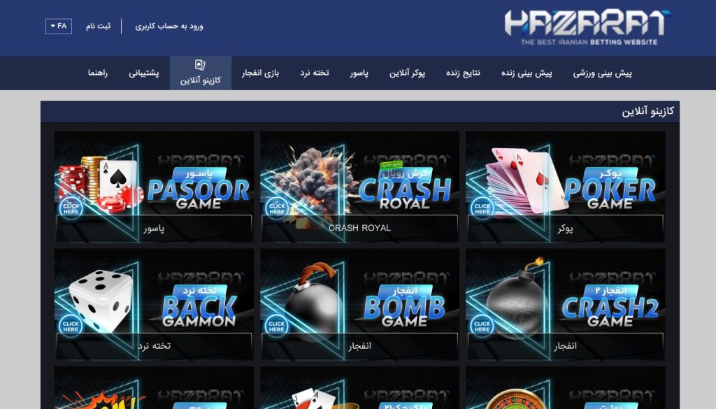 در کنار پیش بینی ورزشی، بخش کازینو آنلاین حضرات شامل بازی های مختلف مانند پوکر، رولت، انفجار و ده ها گزینه دیگر است که برای هر نوع سلیقه ای مناسب می باشد. این بازی ها با گرافیک مناسب و سرعت بالا ارائه شده اند تا کاربران بدون اختلال بتوانند تجربه ای واقعی از کازینو داشته باشند. تنوع زیاد بازی ها باعث شده همه کاربران گزینه مناسب خود را پیدا کنند.