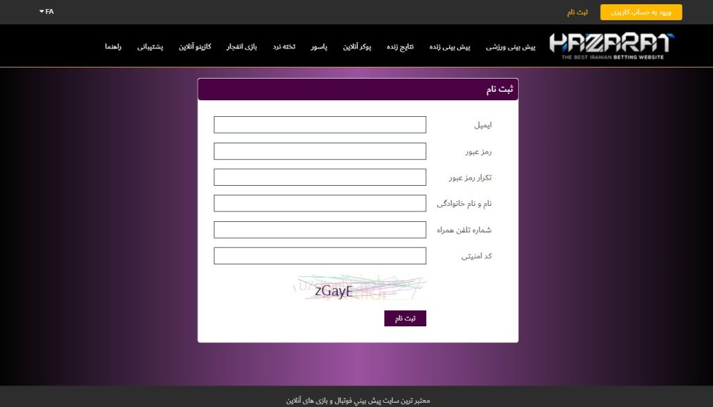 - چگونه در Hazarat ثبت نام می کنم؟ با ورود به صفحه اصلی و پر کردن فرم ثبت نام می توانید حساب خود را ایجاد کنید و بلافاصله وارد شوید.