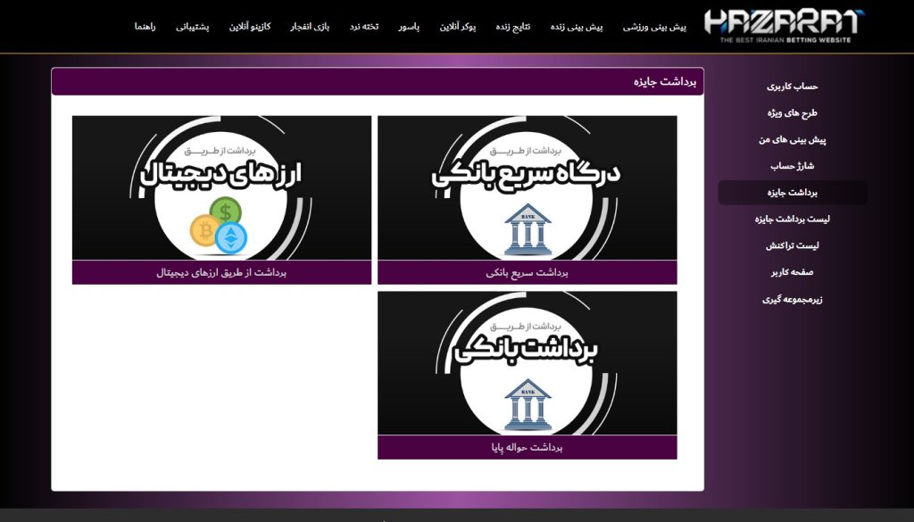 رعایت حداقل و حداکثر میزان شارژ تعیین شده نیز باعث می شود تراکنش ها با شفافیت و بدون مشکل انجام شوند. برداشت از حساب نیز فرآیندی ساده و قابل اعتماد دارد. کاربران پس از ورود به حساب، می توانند مبلغ مورد نظر را وارد کرده و روش برداشت دلخواه خود را انتخاب کنند. این روش ها به گونه ای طراحی شده اند که سریع، امن و بدون ابهام باشند. Hazarat Bet